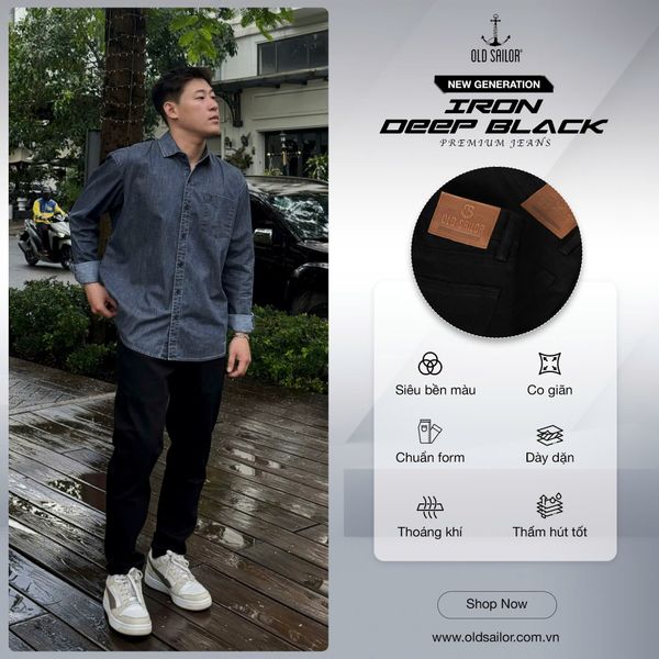 Deep Black không phải là một màu đen đơn thuần.Đó là cách Old Sailor xây dựng một dòng jeans dành cho những người đàn ông hiểu rõ mình cần gì: mặc gọn – giữ form – bền màu – ổn định lâu dài .