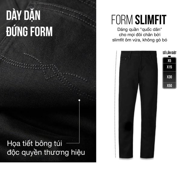 Quần Iron Deep Black Premium Jeans - Form Slim - 7338